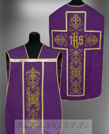 Römische Kasel Weiß mit IHS aus Damast und Cremefarbenem Mittelband |