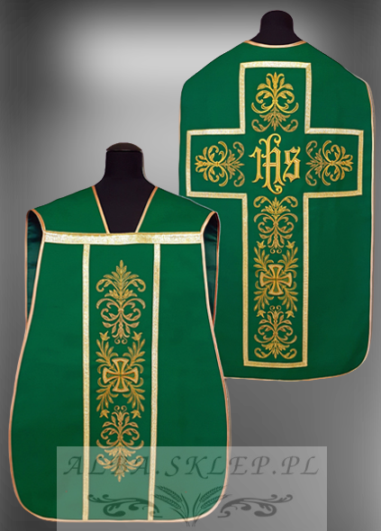 Grüne Römische Kasel reich bestickt mit IHS