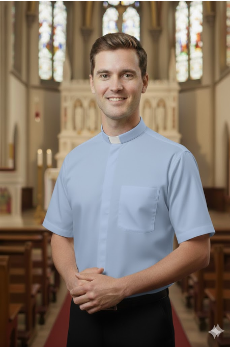 Priesterhemd mit kurzen Ärmeln, hellblau