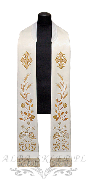 Diese wunderschöne eucharistische Stola ist perfekt für liturgische Feiern im Zusammenhang mit dem Sakrament der Eucharistie, wie Messen, Anbetungen und andere besondere kirchliche Anlässe. Ihre reichhaltige Stickerei und Symbolik unterstreichen die spirituelle Bedeutung der Eucharistie, während das elegante Design ihr besonderen Charme verleiht.