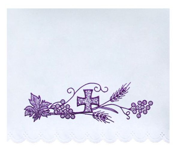 Altar Cloth with Purple Embroidery of Cross, Wheat, and Grapes