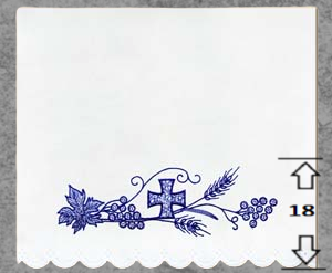 We present an elegant altar cloth featuring a beautiful purple embroidery of a cross, wheat stalks, and grapes, symbols of deep Eucharistic significance. This altar cloth is perfect for liturgical celebrations during Lent and other church occasions, highlighting the spiritual dimension of the service.