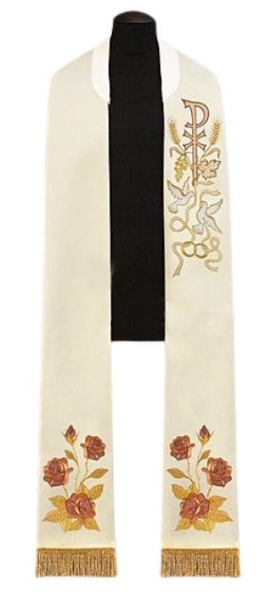 This unique stole is the perfect choice for wedding ceremonies. The subtle and symbolic embroidery highlights the spiritual significance of the sacrament of marriage, while the elegant design gives it a distinctive charm.