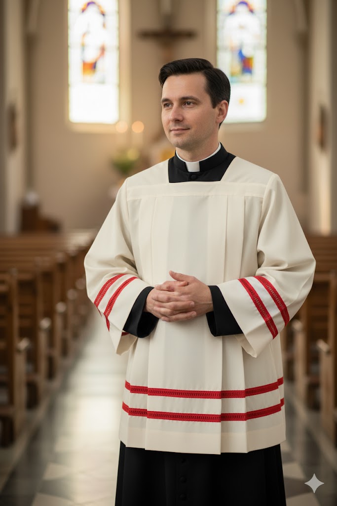 ✨ Priestly Linen Surplice with Red Hemstitch ✨