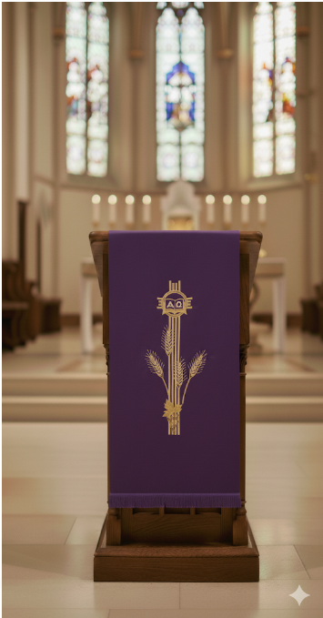 This cover perfectly complements the church’s decor, especially during Advent and Lent celebrations. Its deep symbolism and elegant design create an atmosphere conducive to prayer and reflection 🙏🕊️.
