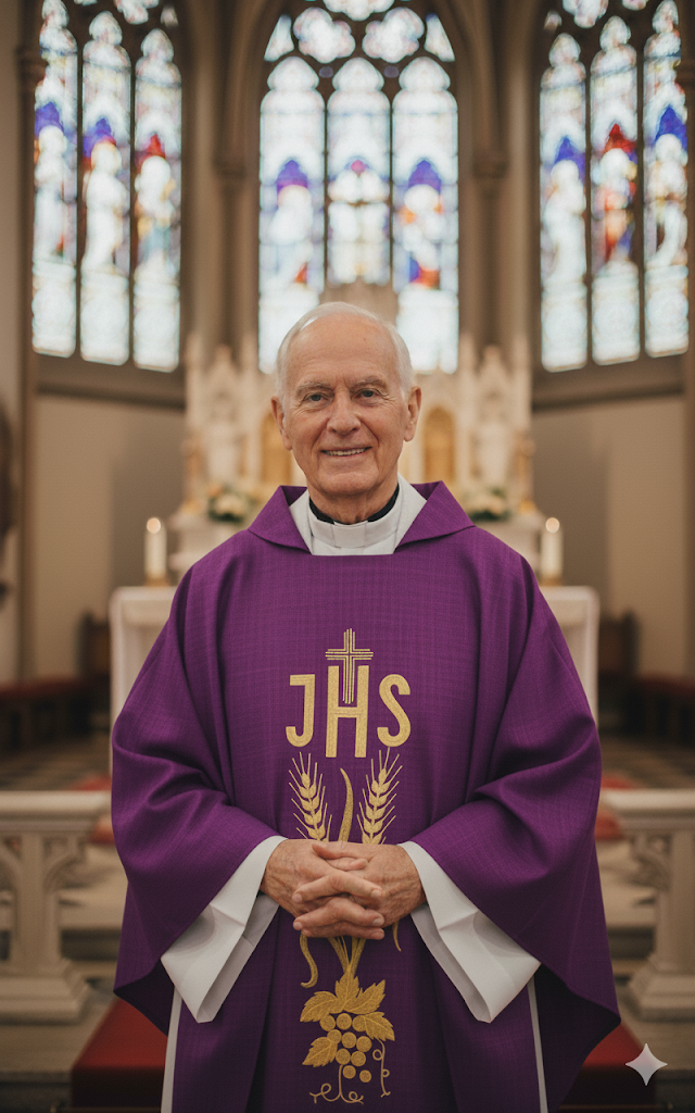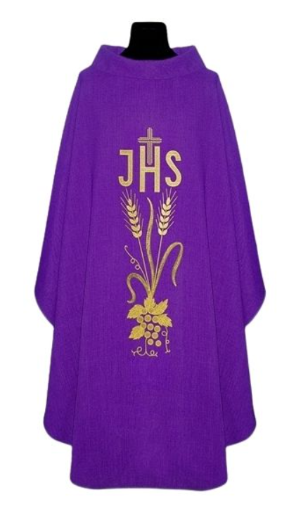 Casula in lino viola ricamata – colori liturgici con croce ✝️💜