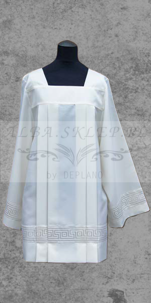 Elegante cotta realizzata in georgette, che garantisce leggerezza e comfort. Decorata con un delicato inserto in raso posizionato sulle maniche e sul bordo inferiore – sia davanti che dietro, conferendo un aspetto unico e una lucentezza sottile. Ideale per occasioni solenni, dove l’eleganza e la dignità del vestito sono particolarmente importanti.