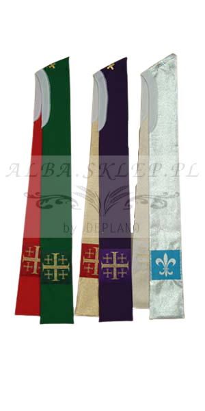 Realizzata in tessuto di alta qualità, questa stola è resistente ed elegante. Il design a doppia faccia la rende eccezionalmente funzionale, permettendo l’uso per diverse celebrazioni liturgiche.