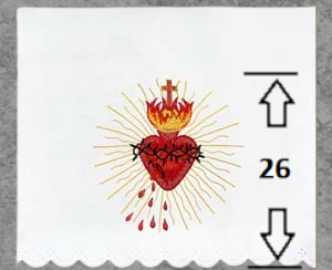 📏 Altezza del ricamo: 26 cm – un ricamo accuratamente realizzato, di grandi dimensioni, che rende il motivo del Sacro Cuore di Gesù ben visibile e cattura l’attenzione dei fedeli.