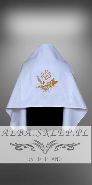 🌟 Biały Welon Liturgiczny z Elanowełny z Haftem IHS i Motywem Eucharystycznym 🌟