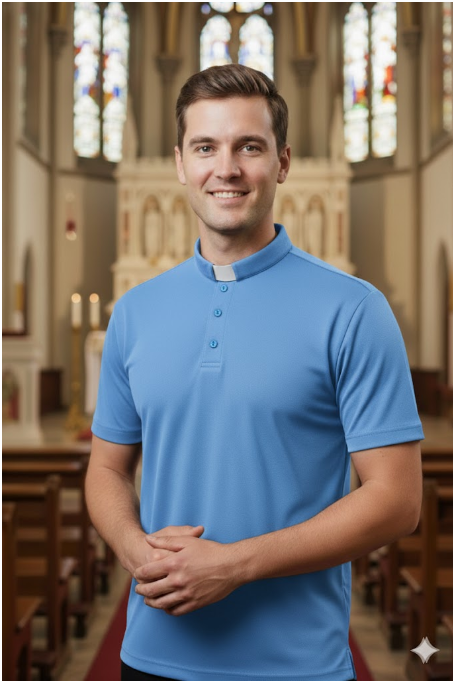 Wygodna polówka dla księdza wykonana z oddychającego materiału- niezwykle praktyczna dla aktywnych księży.