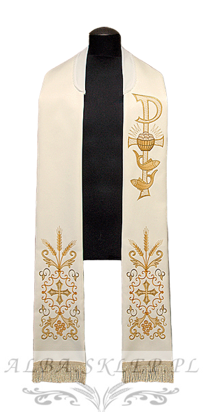 - Złote frędzle na końcach, nadające stułce elegancji i uroczystego charakteru